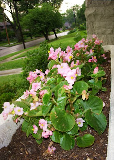 Also, my back bed is getting rowdy in a nice way and my begonias are getting some deeper color. They were pale-pale pink when I got them and I didn't love them once I got them into the planters. I mean, I liked them. They ARE flowers. And I love flowers. But anyhoo, the light pink with our light house wasn't enough contrast. Which I totally didn't think about when I bought them. But they're getting some darker pink and it tickles me pink. Ha, tickles me pink... Didn't even mean to do that.
